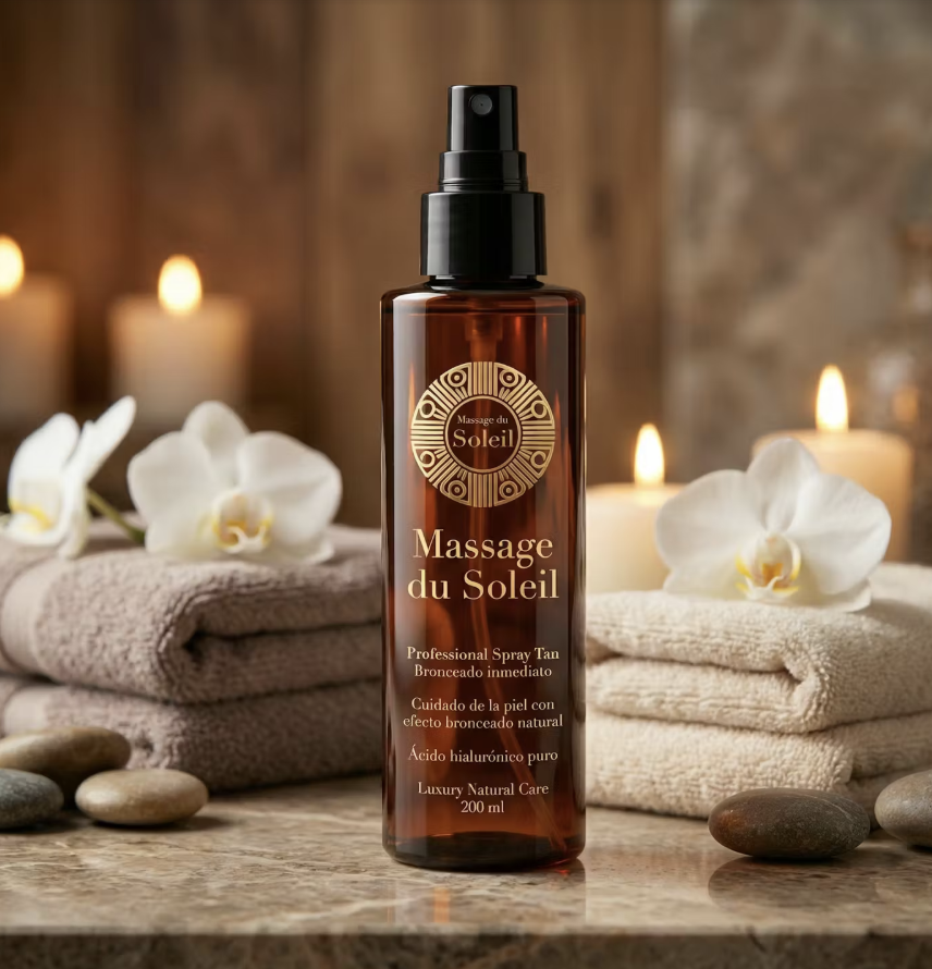 Massage du Soleil  traslada al hogar el tratamiento cosmético avanzado que ya conoces en cabina. Realza el tono natural de la piel con un efecto uniforme y elegante, sin necesidad de tomar el sol y sin alterar la rutina habitual de cuidado.